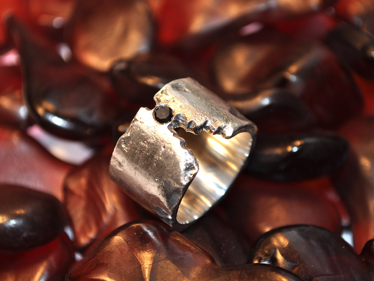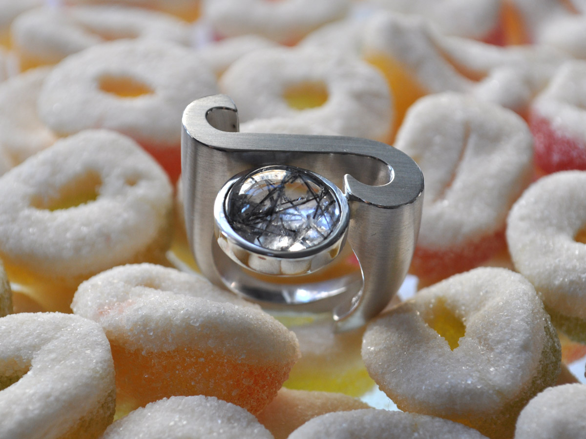 Der Turmalin ist facettiert, die Ringoberfläche wurde flambiert.